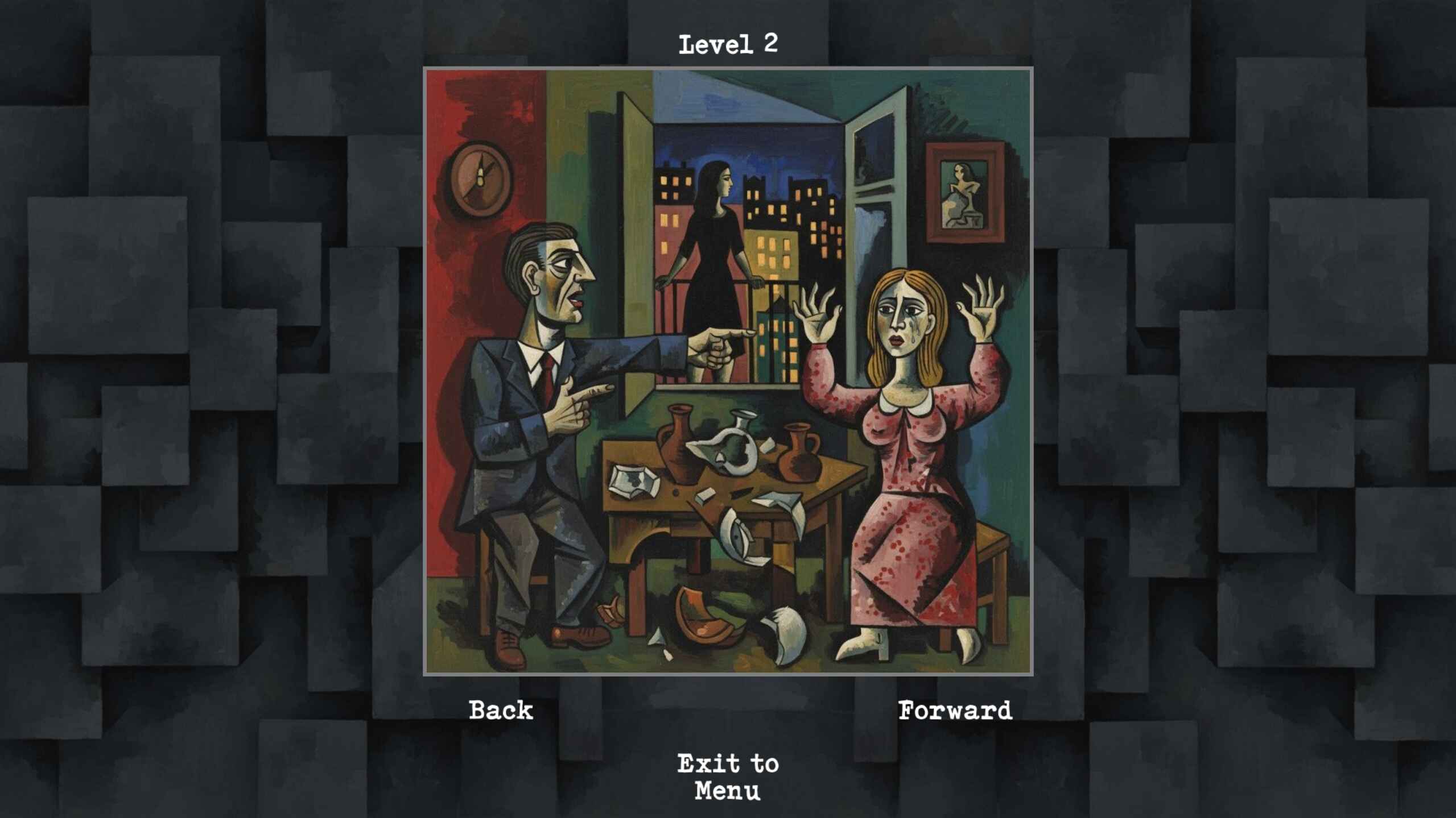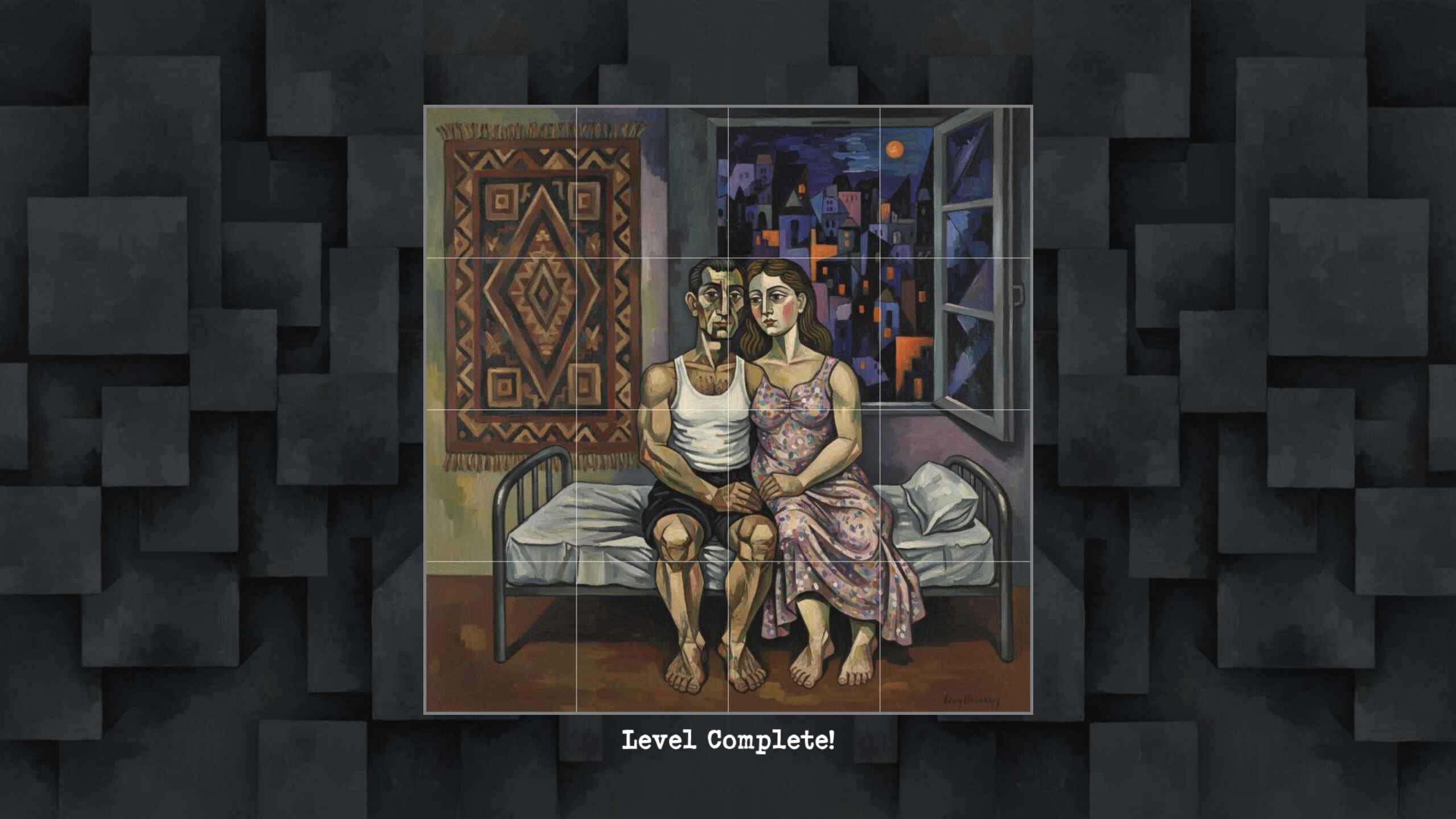 This is an engaging puzzle with 16 levels, where you assemble paintings from our life, rendered in the cubism style, from 16 fragments on a 4x4 grid. Each level is a unique cubist painting depicting scenes from our life, which you need to restore from shuffled parts.